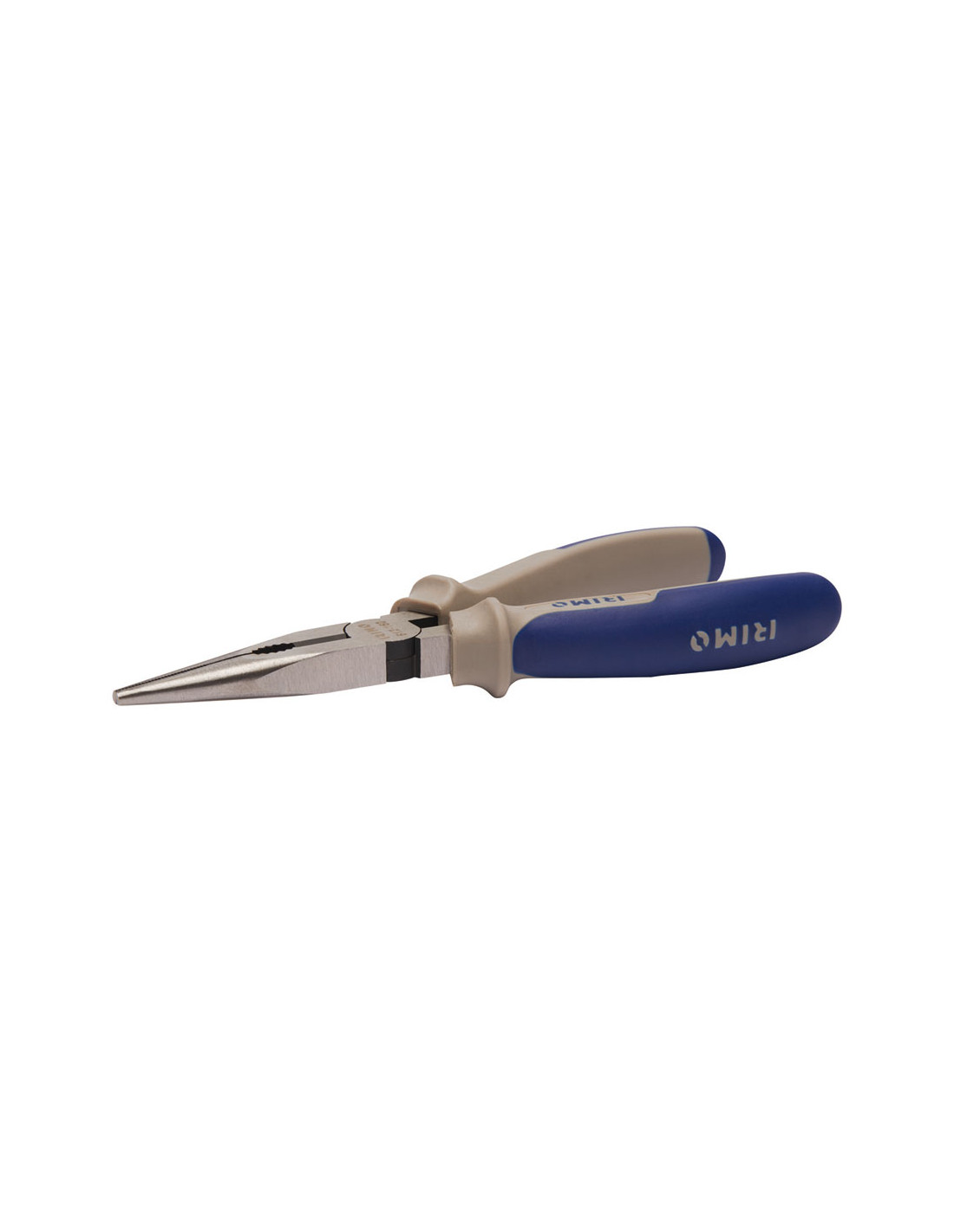 Pince à bec semi-rond avec manche bimatière, 161mm 612-160-1 irimo. pince à bec demi-rond. avec coupe trempée par induction pour fils souple et dur. poignées : bi-matières et soft grip qui offrent confort et contrôle. finition poli. matériau: acier allié haute performance. dureté maximale du bord de coupe : 58-65 hrc. norme : iso 5745. capacité de coupe max : 1- fil de cuivre, 2- fil de dureté moyenne.