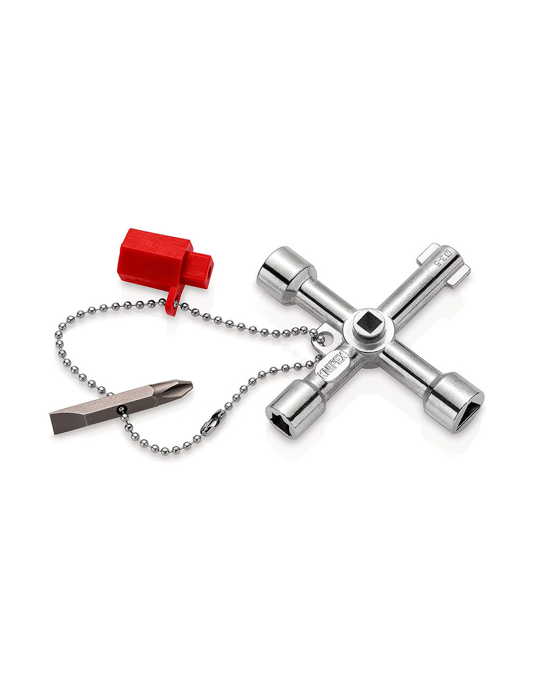 KnipexClés pour armoires de commande 76mm knipex. pour les armoires de commande et pour les systèmes de passage de gaz, d'eau et d'électricité tels que les systèmes de climatisation, la ventilation, les panneaux électriques, les vannes de passage, etc. pointe d´embout rèversible: piointe plate 1,0x7mm et pointe étoile ph2. avec adaptateur 1/4" pour pointes sur chaîne de sécurité. avec adaptateur 1/4" pour pointes sur bras.