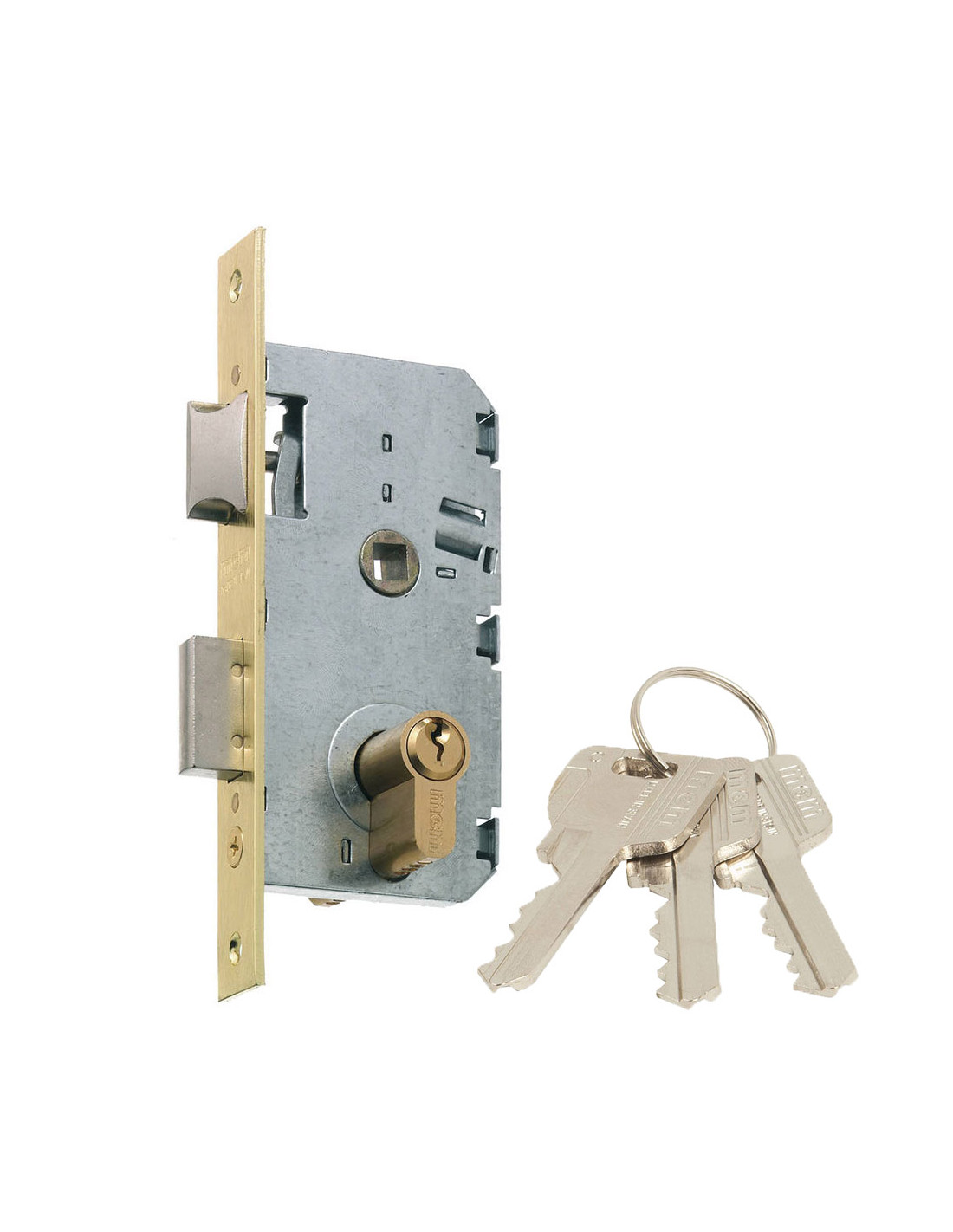 Serrure hypothécaire 1 point 2501-235an311 mcm mesure entre axes 47mm / loquet et levier / cylindre série e, finition laiton. entrée 35. contient 3 clés serreta