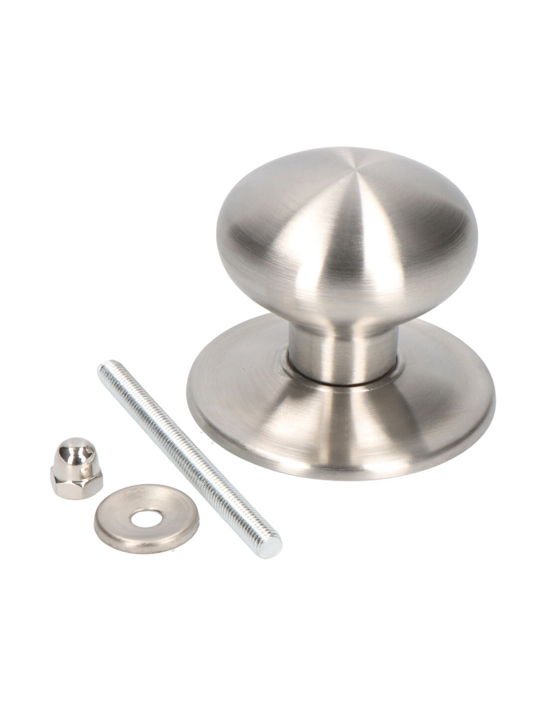 Bouton de porte lisse blister pp02. taille 70mm. métrique 8. plaque et bouton unis. matériau en acier inoxydable. finition en acier inoxydable (vis no incluses)