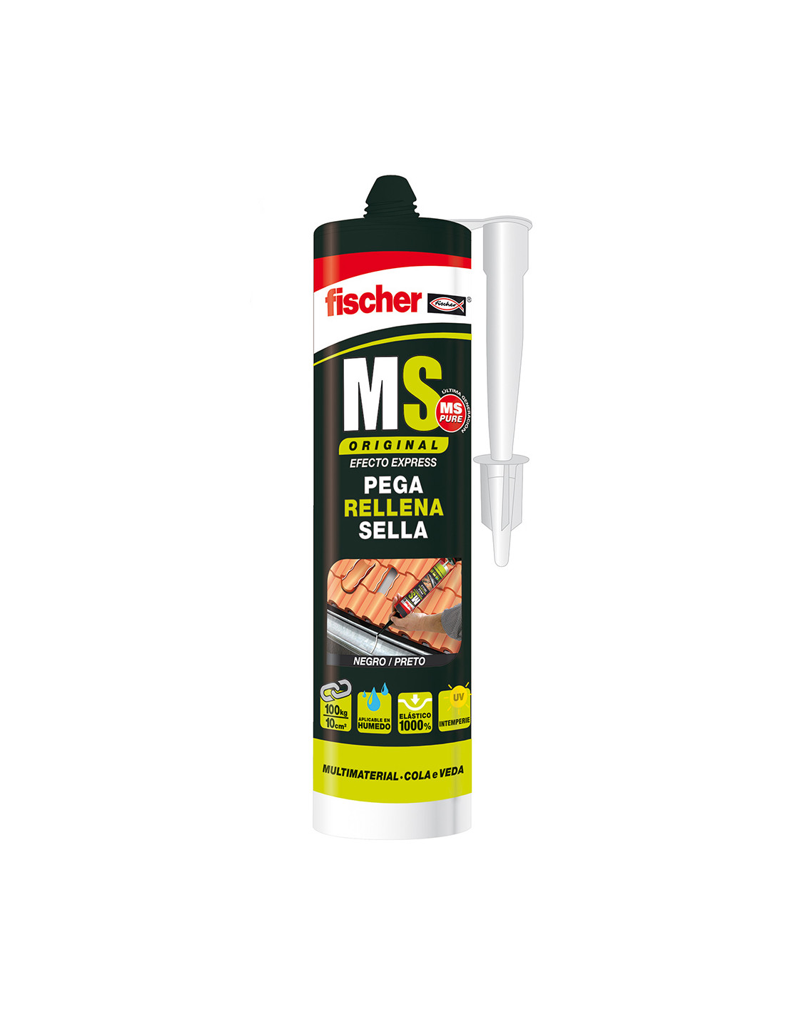 Mastic d'étanchéité adhésive noir fischer 290ml colle scelle remplit élastique 1000% 100kg/10cm2 applicable sur support humide