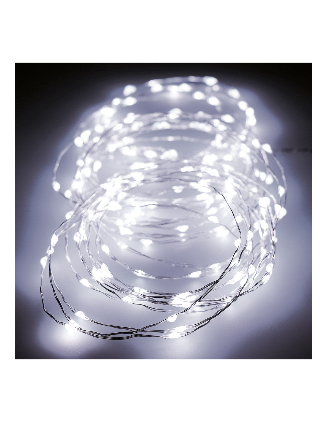 LUMINEOGuirlande micro led scintillante 180 led lumière froide. 8 fonctions de lumière et effet mémoire. câble argenté. ip44 transformateur. câble d'alimentation: 5m. distance entre la première ampoule et la dernière: 9m. longueur totale: 14m distance entre ampoules 5cm. ampoules non remplaçables.