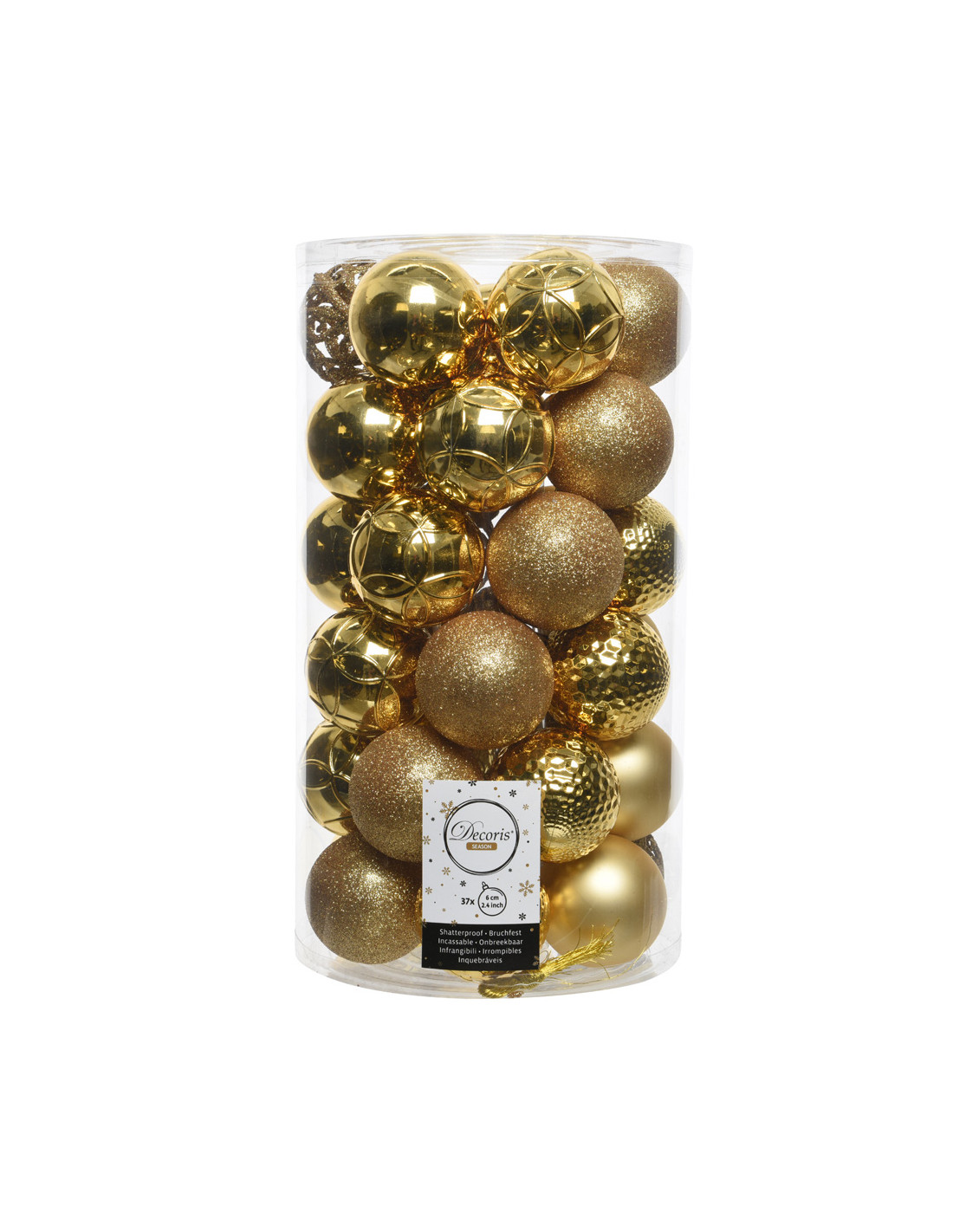 Lot 37 boules de noël assortiment de modèles et textures couleur doré ø6cm (diàmetre)