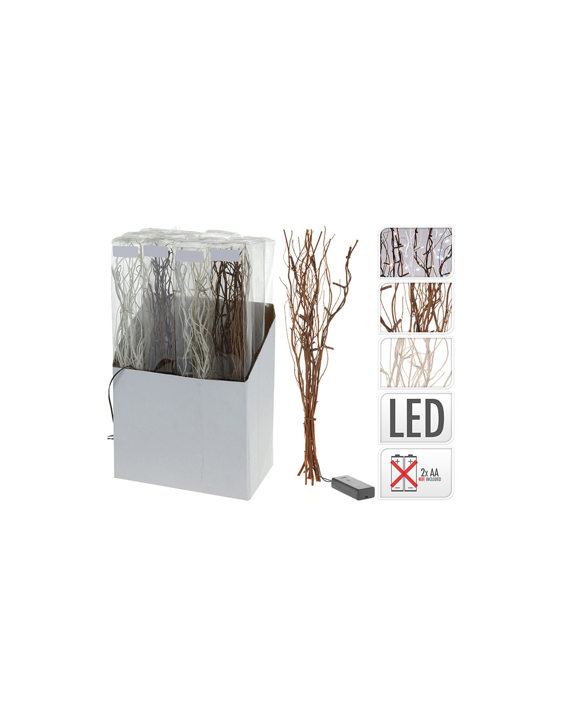 Branche de saule environ 10 pièces, 40 cm avec 12 led, diamètre de câble 0.08mm2, boîte à piles 2xaa, 60x51x415mm