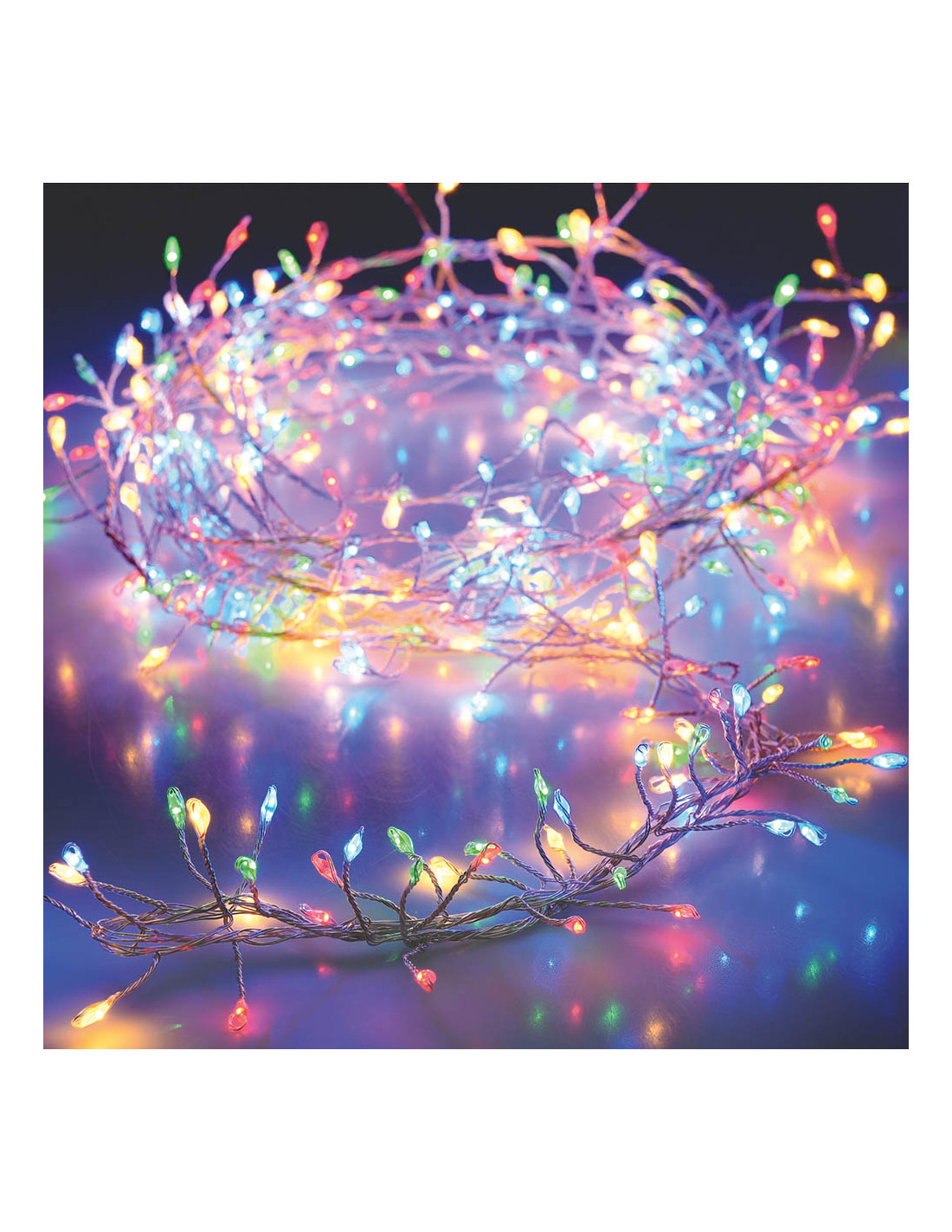 Guirlande lumineuse câble argenté, 100 microled multicouleur, 0.3mm avec revêtement plastique, fonctionne à piles 3x aa non incluses)cable d'alimentation 50cm. distance entre la première ampoule et la dernière 1m. longueur totale : 1,5m