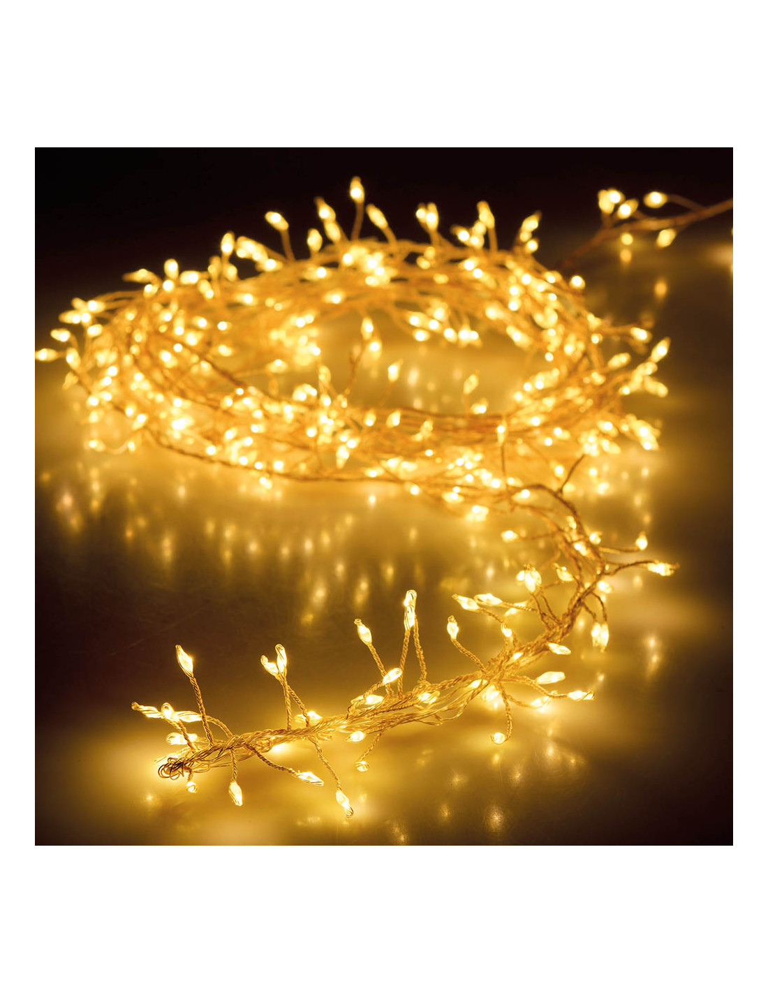 Guirlande lumineuse grappe câble argenté 100 lumière chaude, leds 0.3mm² avec un revêtement en plastique, fonctionne à piles 3xaa non incluses cable d'alimentation 50cm. distance entre la première ampoule et la dernière 1m. longueur totale : 1,5m