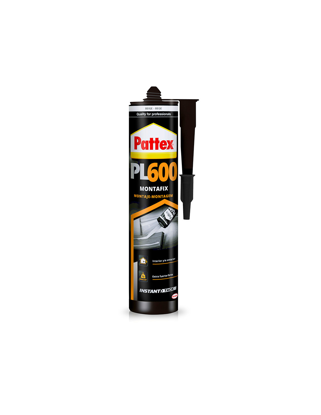 Pattex pi600 montafix cartouche de 300ml. adhésif de montage professionnel, permet une fixation rapide et résistante sur tous types de matériaux. pour tous types de bois, dm, contreplaqués, agglomérés et plaques comme sur tous types de supports: platre, ciment, brique, pierre, ceramique, liège, métaux, pvc rigide et plastique.
