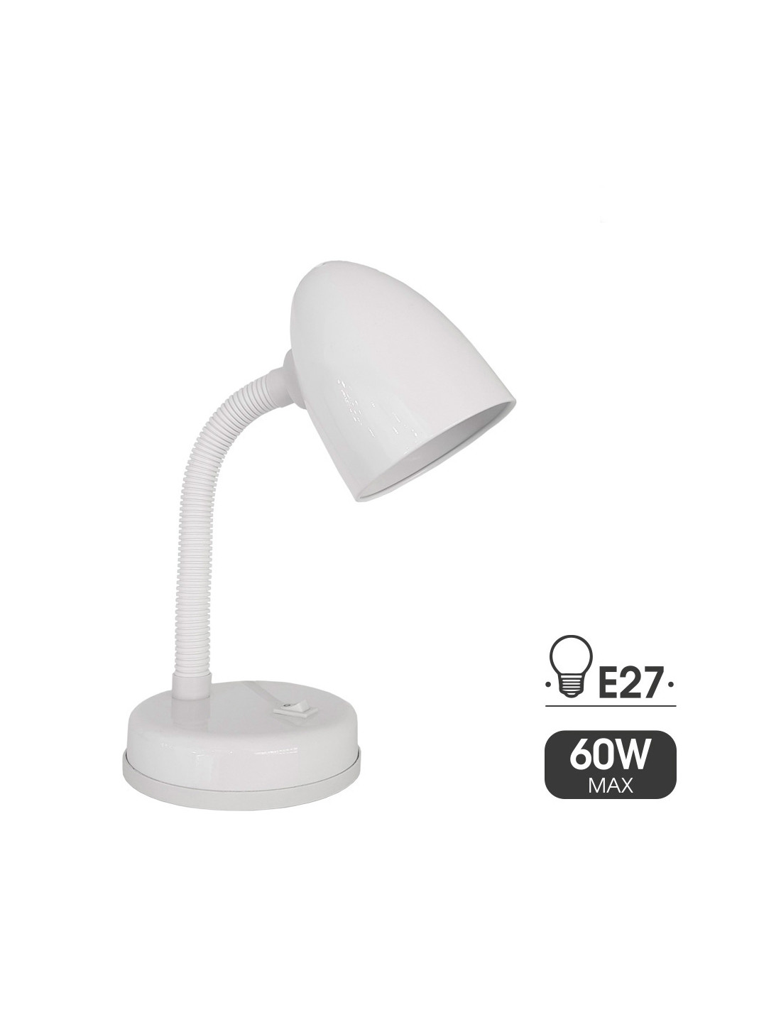 Lampe de table modèle amsterdam e27 couleur blanche e27. mesures: 13x31cm (largeur/hauteur) puissance maximale: 60w. tension: 220-240v 50hz ce edm