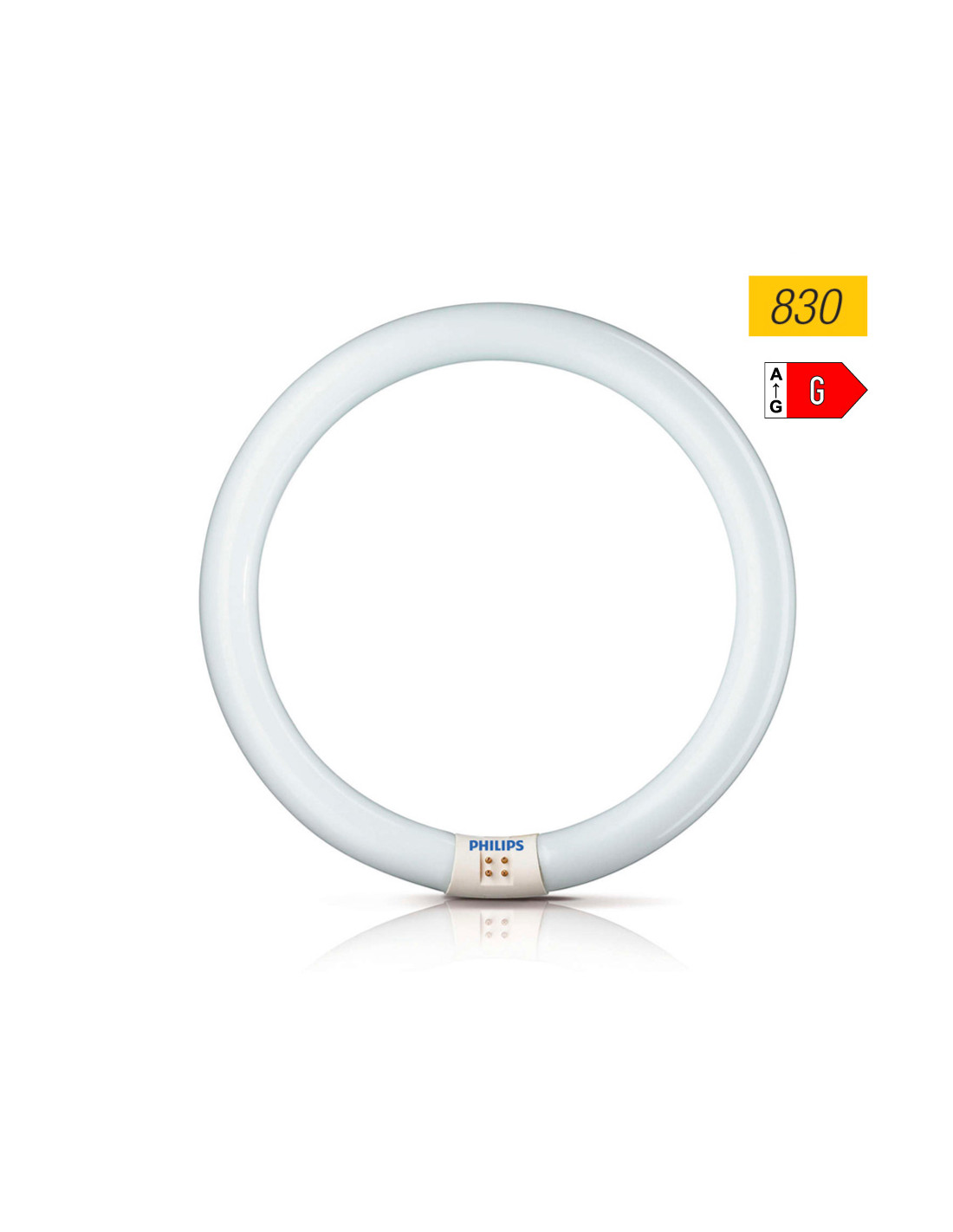 Tube fluorescent circulaire 32w triphosphor 830k lumière froide. mesures: ø30cm. angle d'ouverture: 360°. luminosite: 2375lm. classe énergétique: g. philips
