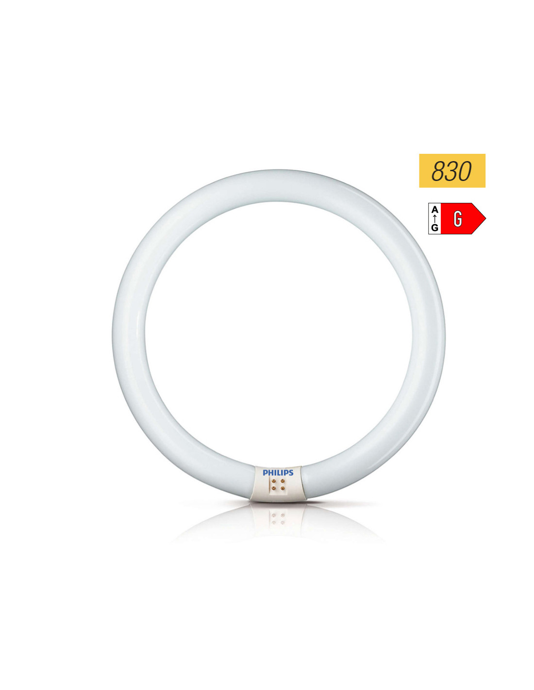 Tube fluorescent circulaire 40w triphosphor 830k lumière froide. mesures: ø40cm. angle d'ouverture: 360°. luminosite: 3200lm. classe énergétique: g. philips