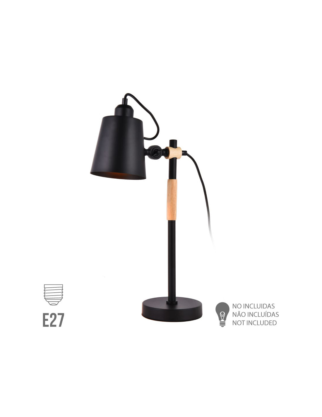Flexo vintage simple. bois/métal. puissance maximale: 60w. mesures: ø15x54cm (diamètre/hauteur) e27 (ampoule non incluse) utilisation en intérieur. tension: 220-240v edm