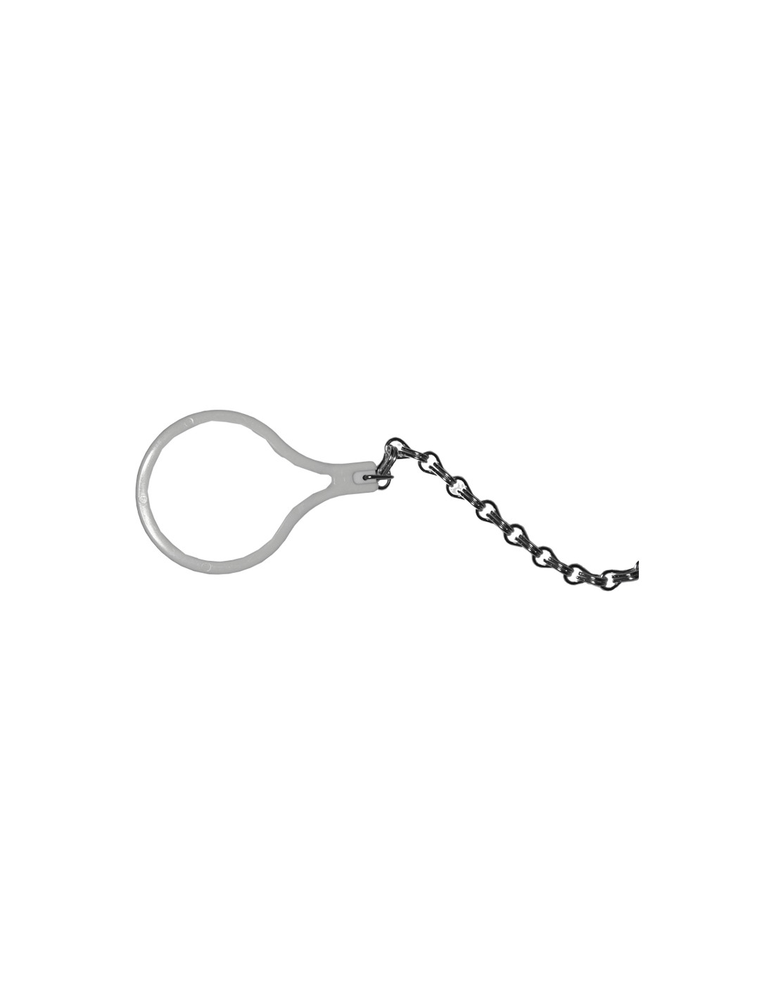 Poignee de reservoir wc. bague blanche. matériel: chaîne en aluminium/métracrylate. (emballage)