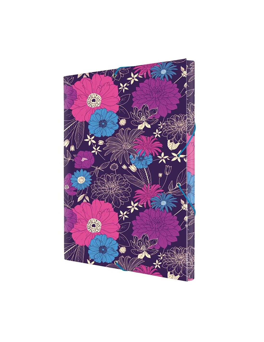 Pochette cartonnee in bloom pour a4 33,5x26cm milan. pochette cartonnee avec epaisseur de 3cm, capacite pour folio et a4 (33,5x26cm), approx 200 feuilles. finition mate avec impression in bloom, assortie à la collection. interieur couleur fuscia assortie à l'elastique et resistante.