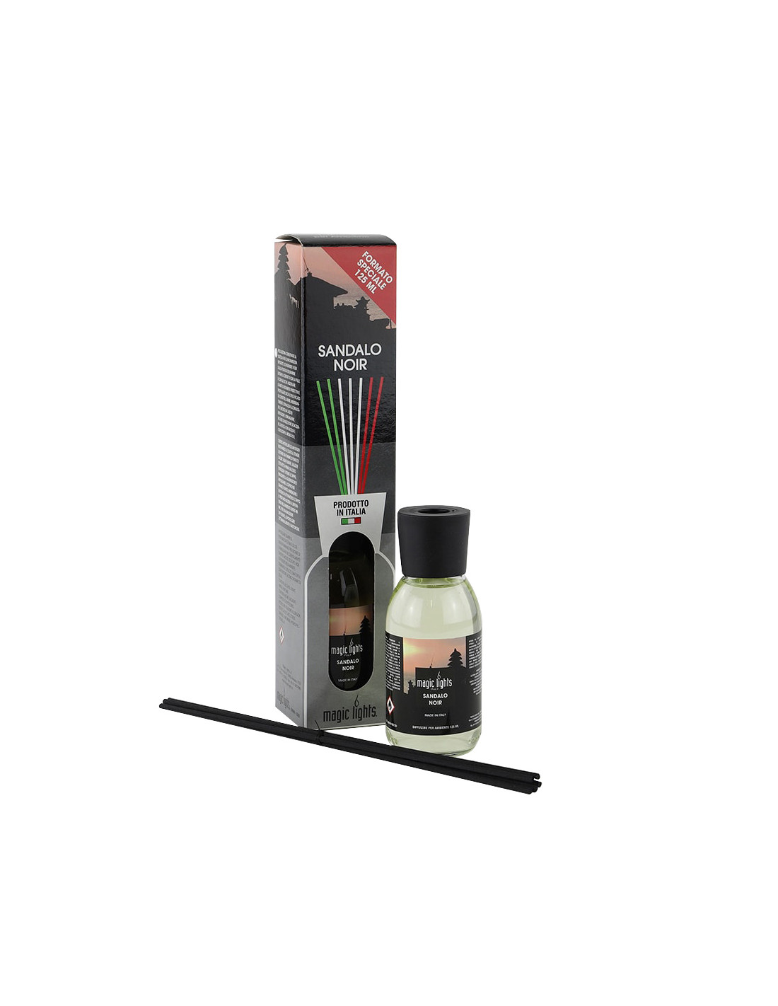 Diffuseur de parfum mikado bois de sandal noir 125ml. 5,9x3,9x9 cm. magic lights