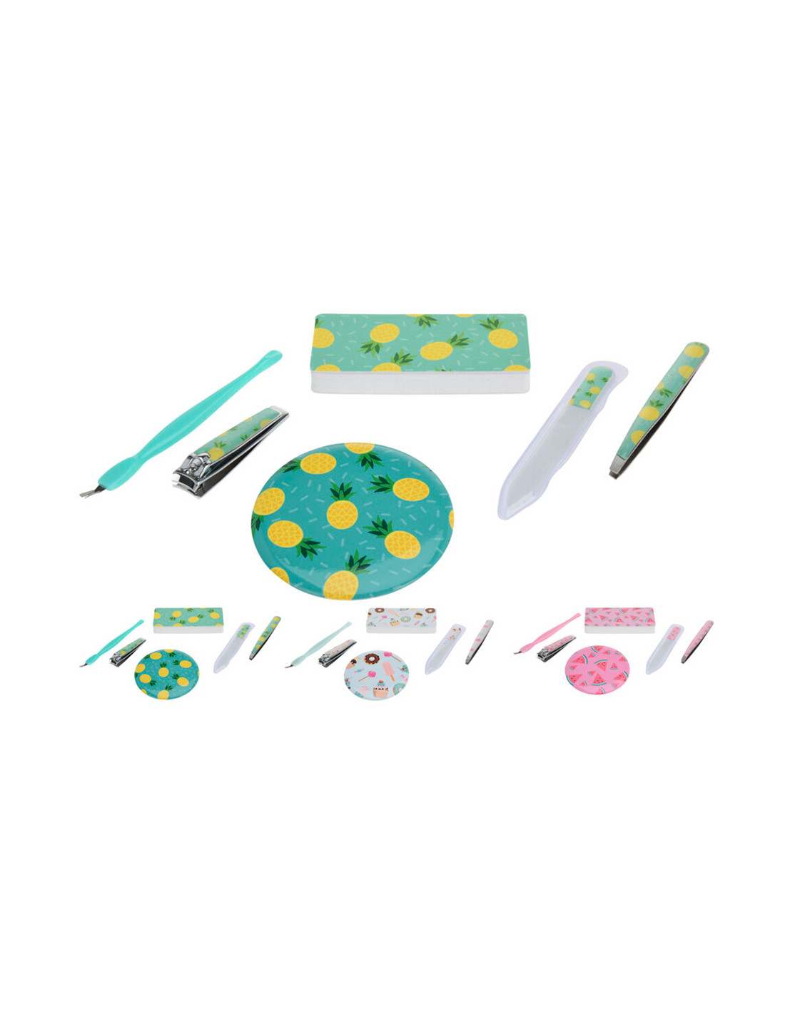 Manucure set 6 pcs différents designs. brosse, coupe-ongles, filigrane, miroir, limes à ongles, brillant à ongles.3 modèles: pasmelon, crème glacée, citron