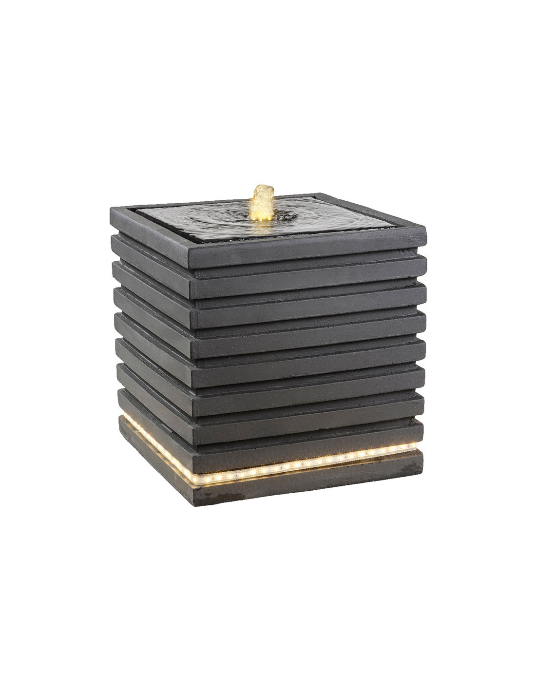 Fontaine d'extérieur carrée, modèles assortis (en fonction du stock), dimensions : 35x35x35cm (largeur/profondeur/hauteur), 82 led, ip44, câble d'alimentation 1m, lumière chaude, capacité de pompe 350 type jr-350lv, led remplaçable, 220- 230v, résine
