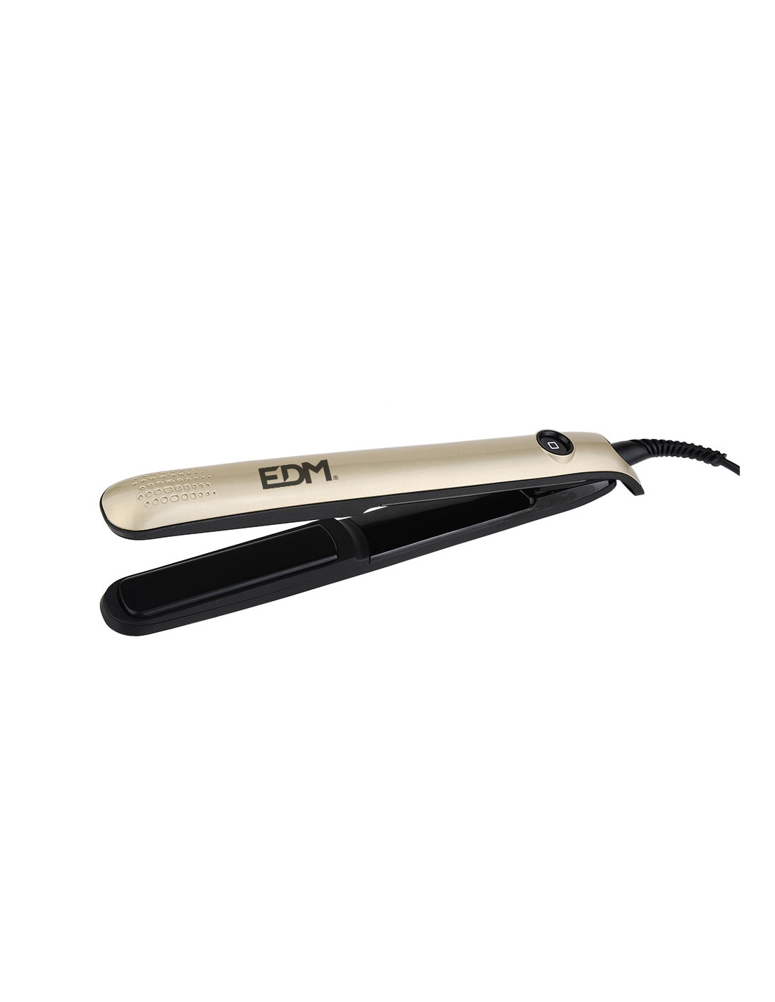 Lisseur de cheveus 33w plaques céramiques. résultats rapides et uniformes. câble de rotation de 360° 33w classe ii temps de chauffe 40s. réglage de température avec écran led pour le style de coiffure desirée: de 140° à 200°. arrêt automatique après 1h. dimensions 4,4x31cm (largeur/profondeur) 220-240v 50 hz edm