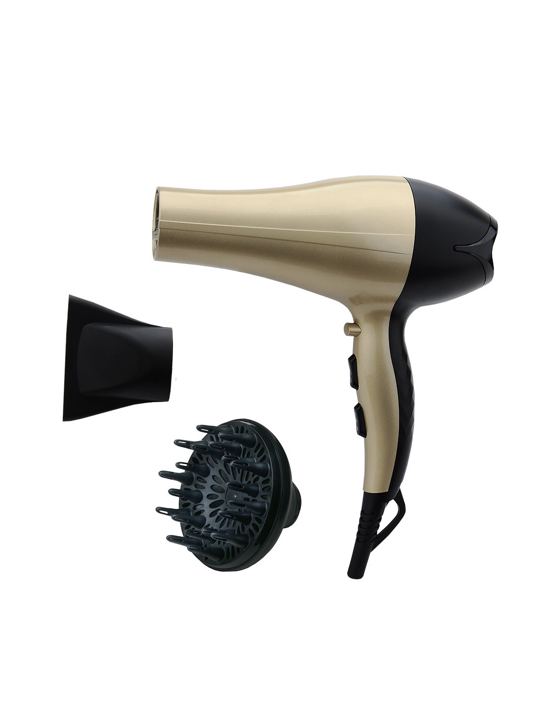 Sèche-cheveux ionique 1900-2300w avec diffuseur et concentrateur d'air. avec technologie ionique pour un séchage 100% anti-statique. cheveux brillants et sans frisottis.1 diffuseur et 1 concentrateur d'air pour un brushing structuré ou des boucles naturelles. capot avec grille. 100% protection contre la surchauffe. interrupteur professionnel. 2 vitesses, 3 niveaux, bouton air froid. dimensions: 9x22,5x28cm (largeur/profondeur/hauteur) 220-240v 50/60hz edm