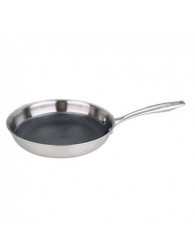 Poele a frire ø20x4,2cm acier inoxydable hi-tech 3 bgmp-1630 masterpro. cette poêle est fabriquée en acier inoxydable 18/10 avec un noyau en aluminium. avec cette combinaison de matériaux, nous obtenons une répartition uniforme de la température et vous pouvez cuire vos aliments de manière uniforme. à l'extérieur, cette poêle a un revêtement antiadhésif, conçu pour résister à l'épreuve du temps. la technologie pallatium présente dans cette panne utilise trois couches différentes qui renforcent la côté la plus superficielle et l'éviter de se rayer ou de se déteriorer. elle offre des propriétés de dureté et de résistance extraordinaires qui font de cette poêle antiadhésive l'alliée parfaite pour un usage quotidien. de plus, la texture en nid d'abeille aide à éviter une détérioration progress