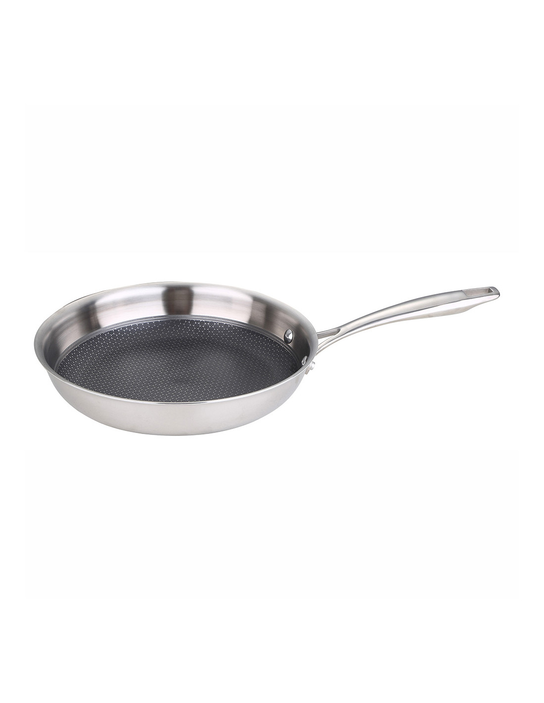 Poele a frire ø28x5,0cm acier inoxydable hi-tech 3 bgmp-1632 masterpro. cette poêle est fabriquée en acier inoxydable 18/10 avec un noyau en aluminium. avec cette combinaison de matériaux, nous obtenons une répartition uniforme de la température et vous pouvez cuire vos aliments de manière uniforme. à l'extérieur, cette poêle a un revêtement antiadhésif, conçu pour résister à l'épreuve du temps. la technologie pallatium présente dans cette panne utilise trois couches différentes qui renforcent la côté la plus superficielle et l'éviter de se rayer ou de se déteriorer. elle offre des propriétés de dureté et de résistance extraordinaires qui font de cette poêle antiadhésive l'alliée parfaite pour un usage quotidien. de plus, la texture en nid d'abeille aide à éviter une détérioration progress